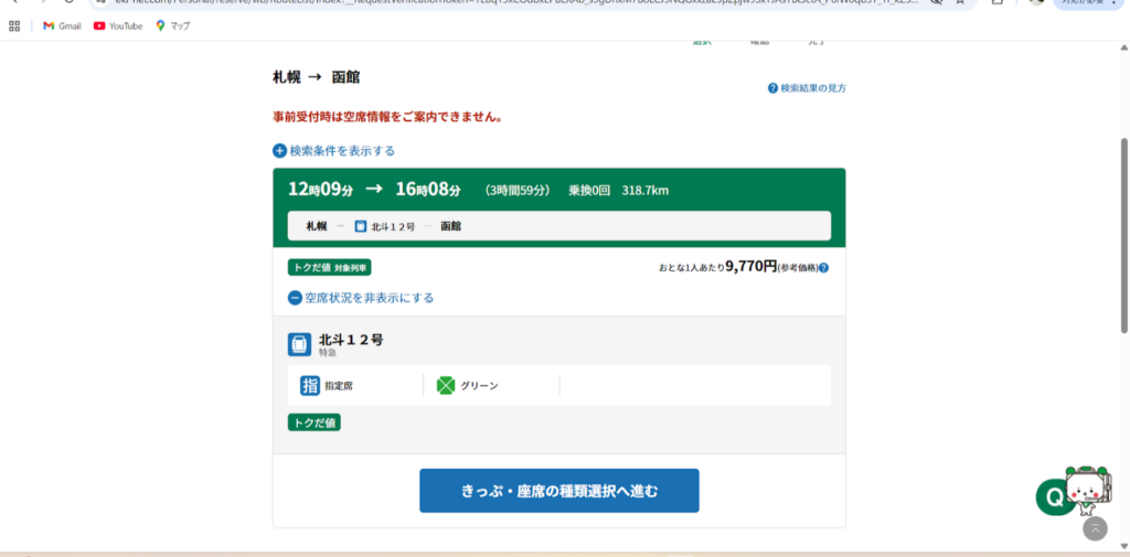 今の函館行きは、発売開始と同時に席が埋まってしまうほどの人気。