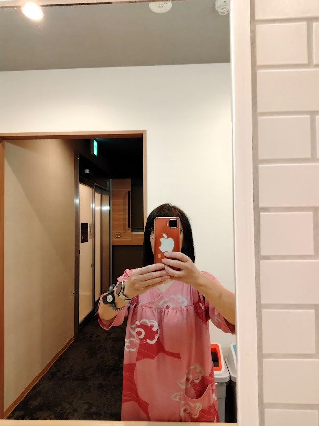 パジャマを持参しなくていいので、LCCで荷物を減らしたい私には嬉しいポイントです。館内はずっとこの格好で過ごせます。